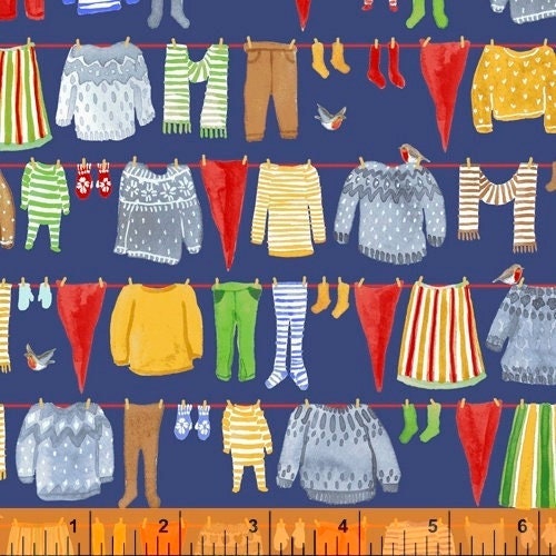 Gnome Laundry in Nordic Blue FAT QUARTER - by Striped Pear studio - Winter Gnome for Windham Fabrics - 100% Organic Cotton Quilting Fabric